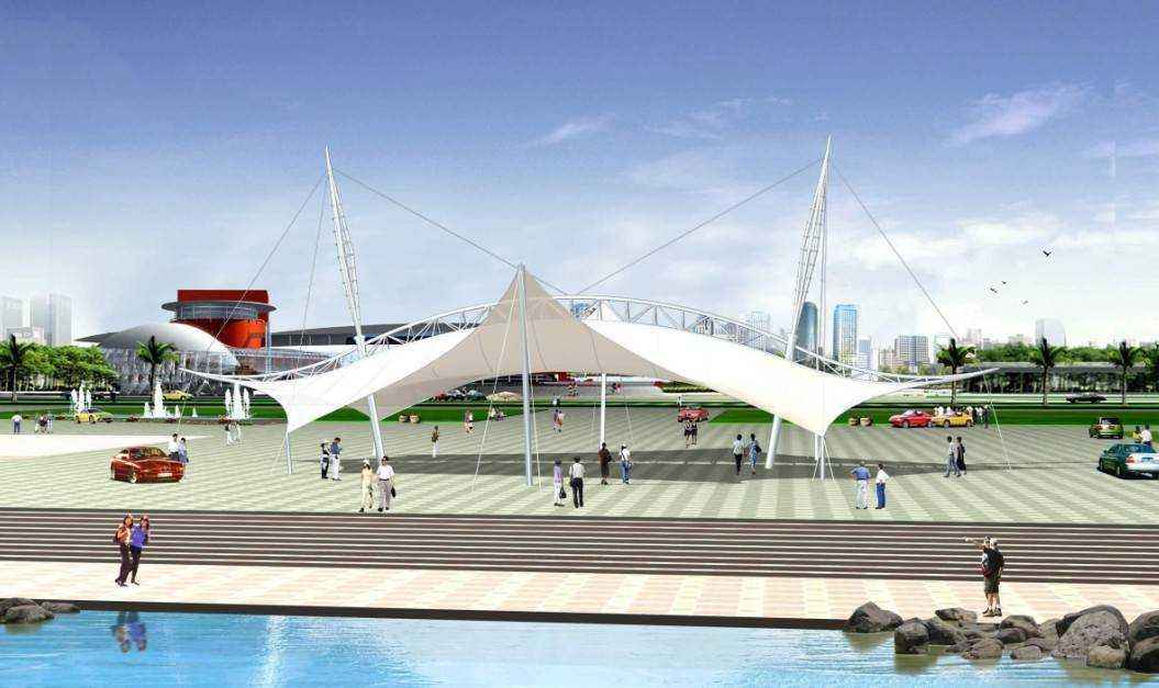 飄浮于天地之間。無論室內還是室外這種雕塑般的質感都令人激動。張拉膜結構可使建筑師設計出各種張力自平衡、復雜且生動的空間形式。在一天內隨著光線的變化,雕塑般的膜結構通過光與影而呈現出不同的形態。日出和日落時,低入射角度的光線將突現屋頂的曲率和浮雕效果,太陽位于遠地點時,膜結構的流線型邊界在地面上投入彎彎曲曲的影子。利用膜材的透光性和反射性,經過設計的人工燈光也可使膜結構成為光的雕塑。